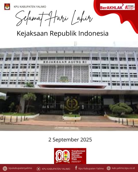 Kami jajaran KPU Kabupaten Yalimo mengucapkan Selamat Hari Lahir Kejaksaan Republik Indonesia yang ke-80.