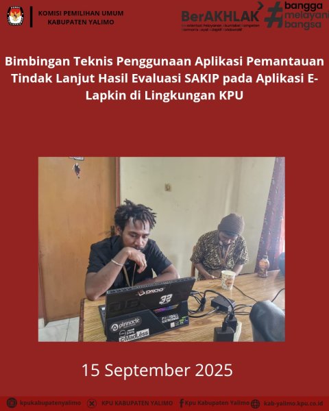 KPU Kabupaten Yalimo, Kepala Sub Bagian Perencanaan Data Informasi, Beby Frans NL Serewi mengikuti zoom yang diadakan oleh KPU RI Bimbingan Teknis Penggunaan Aplikasi Pemantauan Tindak Lanjut Hasil Evaluasi SAKIP pada Aplikasi E-Lapkin di Lingkungan KPU pada Senin, 15 September 2025.