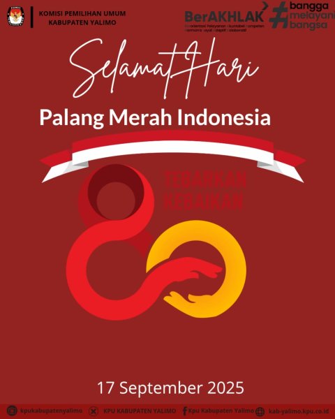 Kami jajaran KPU Kabupaten Yalimo mengucapkan Selamat Memperingati Hari Palang Merah Indonesia 17 September 2025.
