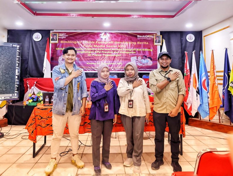 Wamena, 25 September 2025 – KPU Kabupaten Yalimo ikut serta dalam kegiatan Bimbingan Teknis (Bimtek) Fotografi dan Editing Berita Pada Media Sosial KPU yang diselenggarakan oleh Komisi Pemilihan Umum (KPU) Provinsi Papua Pegunungan yang berlangsung di Wamena pada tanggal 24-25 September 2025 dan diikuti oleh perwakilan KPU Kabupaten se-Papua Pegunungan.