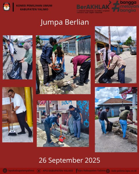 Wamena : KPU Kabupaten Yalimo melaksanakan Jumpa Berlian (JUMat PAgi BERsih LIngkungan) yang dilaksanakan di Kantor KPU Kabupaten Yalimo.