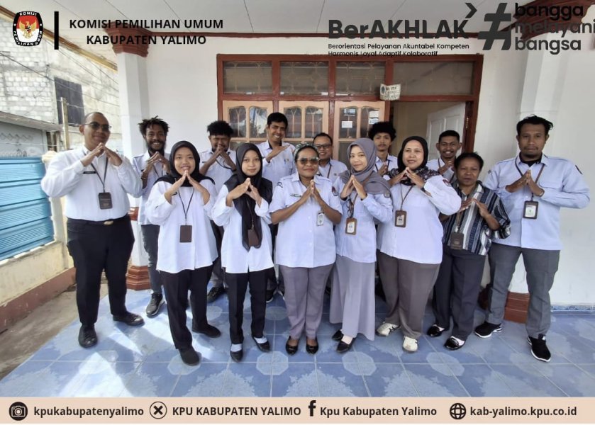 Wamena: Pada hari Senin yang cerah ini KPU Kabupaten Yalimo melaksanakan Apel Pagi. Acara Apel ini rutin dilaksanakan setiap hari Senin untuk meningkatkan semangat memulai hari kerja. Apel ini dilaksanakan di perwakilan Kantor KPU Kabupaten Yalimo di Wamen. Apel di mulai pada pukul 09.00 WIT.