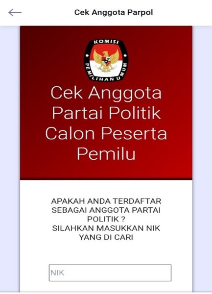 - Klik "Cek Anggota Parpol" dan masukkan NIK Anda lagi.