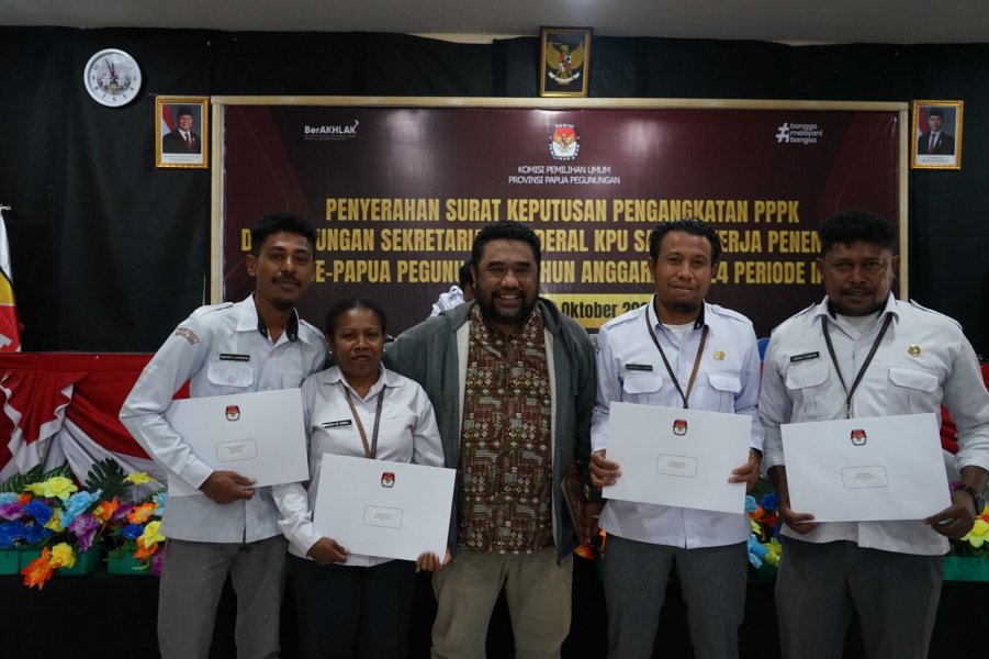 Wamena: Panggilan Melaksanakan Tugas Pegawai Pemerintah dengan Perjanjian Kerja (PPPK) Tenaga Teknis dan Tenaga Kesehatan di Lingkungan Sekretariat Jenderal Komisi Pemilihan Umum Tahun Anggaran 2024 Periode II, Penyerahan Surat Keputusan Pengangkatan PPPK di Lingkungan Sekretariat Jenderal KPU Satuan Kerja Penempatan se-Papua Pegunungan Tahun Anggaran 2024 Periode II.