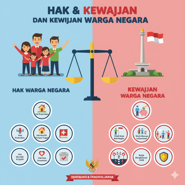 Dalam kehidupan berbangsa dan bernegara, setiap warga negara memiliki kedudukan yang sama di hadapan hukum serta memiliki hak dan kewajiban yang diatur oleh konstitusi. Pemahaman tentang hak dan kewajiban warga negara menjadi penting agar setiap individu dapat berperan aktif dalam menjaga keutuhan, keamanan, dan kemajuan negara.