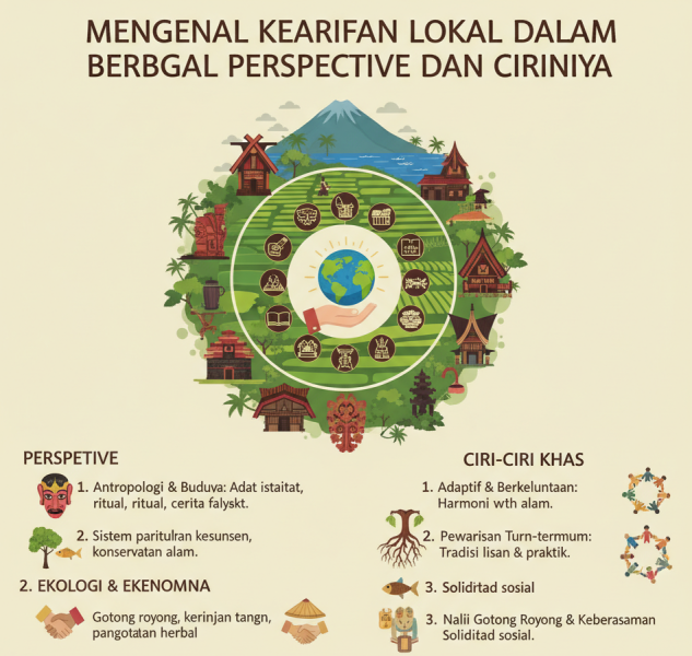 Intinya: kearifan lokal adalah pengetahuan-terapan yang berakar pada pengalaman komunitas, bersifat kontekstual, terpadu dengan budaya, dan berfungsi mengatur hidup bersama.