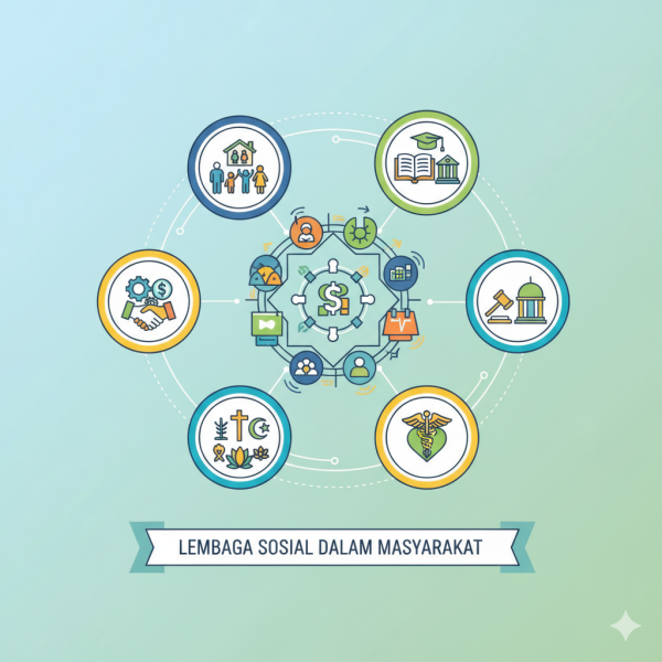 Lembaga sosial adalah sistem norma dan nilai yang terbentuk dalam masyarakat untuk mengatur perilaku dan memenuhi berbagai kebutuhan hidup manusia. Menurut sosiologi, lembaga sosial tidak hanya berbentuk fisik (seperti sekolah atau pengadilan), tetapi juga mencakup aturan dan kebiasaan yang telah diterima dan dijalankan oleh masyarakat secara turun-temurun. Contohnya, sistem keluarga, pendidikan, agama, ekonomi, dan pemerintahan adalah bentuk lembaga sosial yang saling berhubungan dan berperan penting dalam kehidupan sehari-hari.