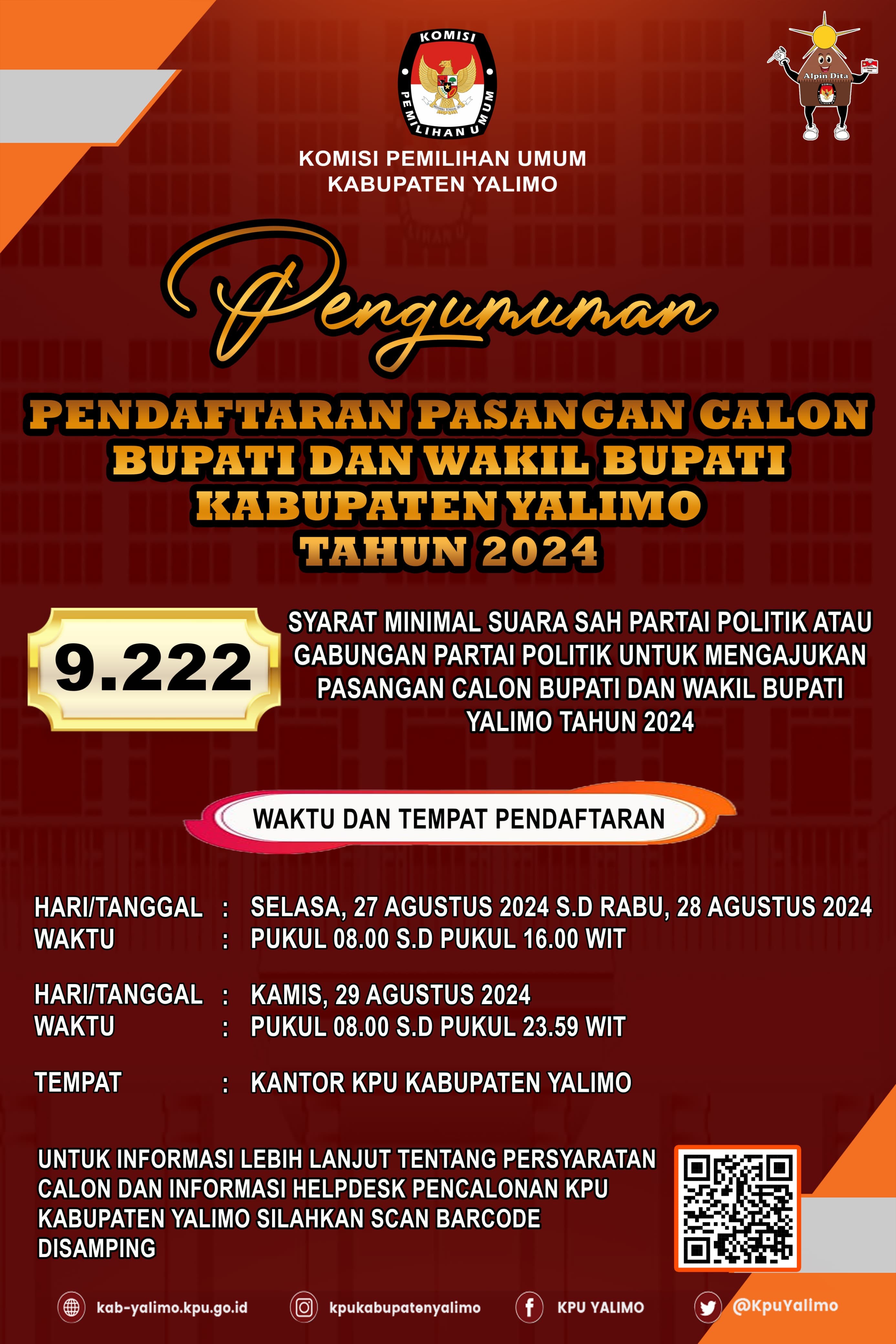 Pengumuman Pendaftaran Bakal Calon Bupati dan Wakil Bupati Yalimo Tahun 2024